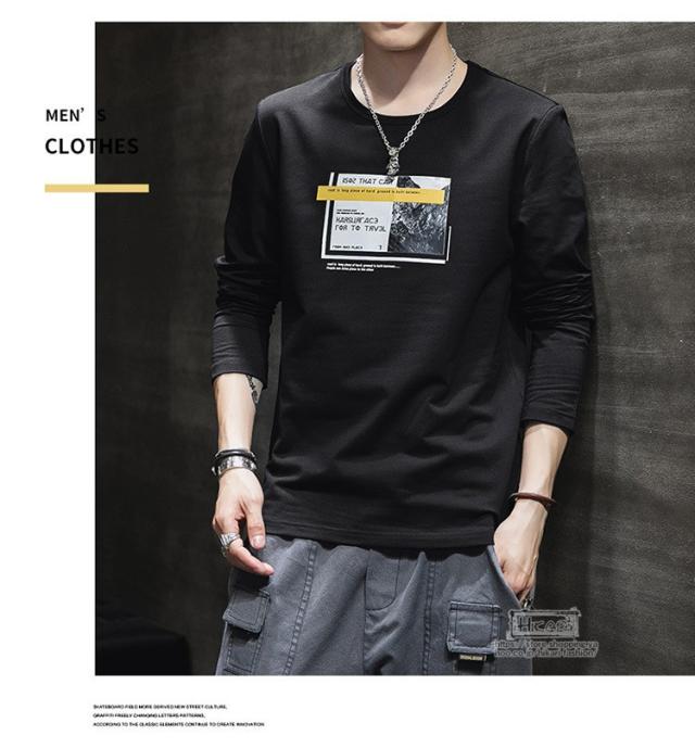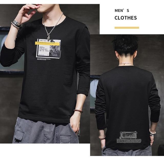 長袖Tシャツ メンズTシャツ プリントtシャツ クルーネック カットソー 細身 長袖 春服 メンズ ファッション