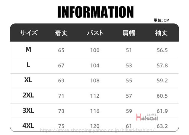 | サイズについての説明 | サイズ M L XL 2XL 3XL 4XL |