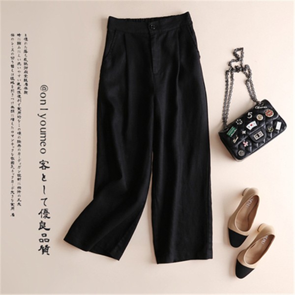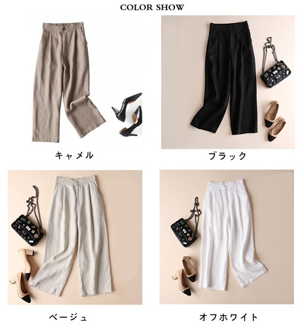 ボトムス パンツ ワイドパンツ リネン 麻 無地 アンクル丈 夏 ロング ゆったり感 ハニーズ ガウチョパンツ ゴム 大きめ