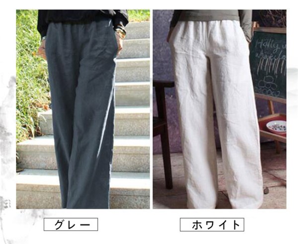 ボトムス パンツ ワイドパンツ リネン 麻 無地 アンクル丈 夏 ロング ゆったり感 ハニーズ ガウチョパンツ