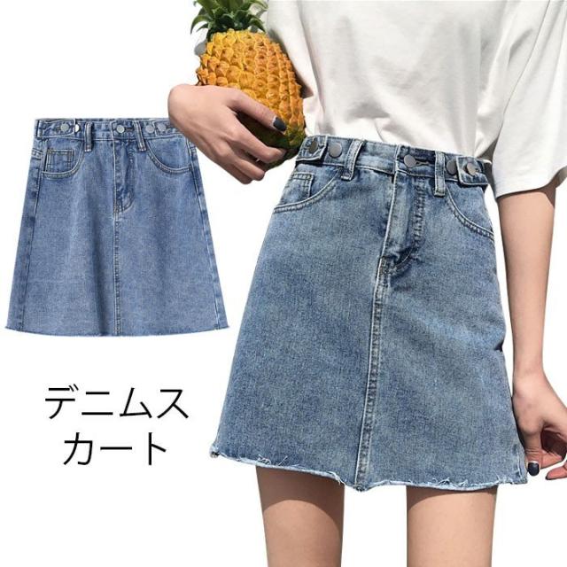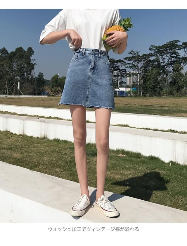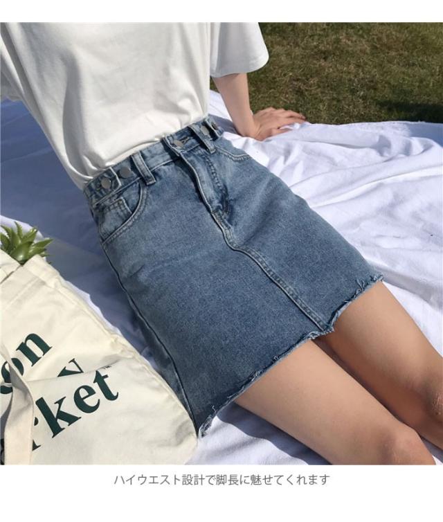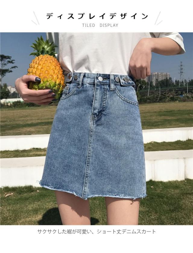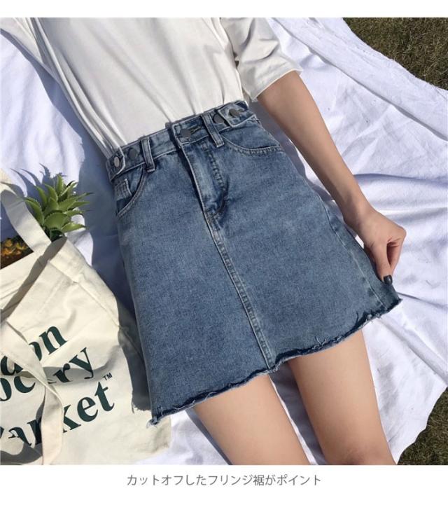 デニム レディース スカート デニムスカート ショートスカート ショート丈 切りっぱなし カットオフ フリンジ裾 ウォッシュ加工 色落ち ハイウエスト