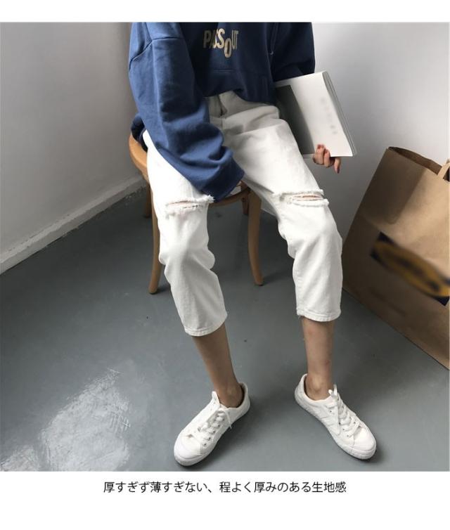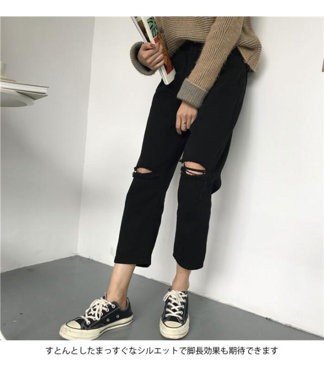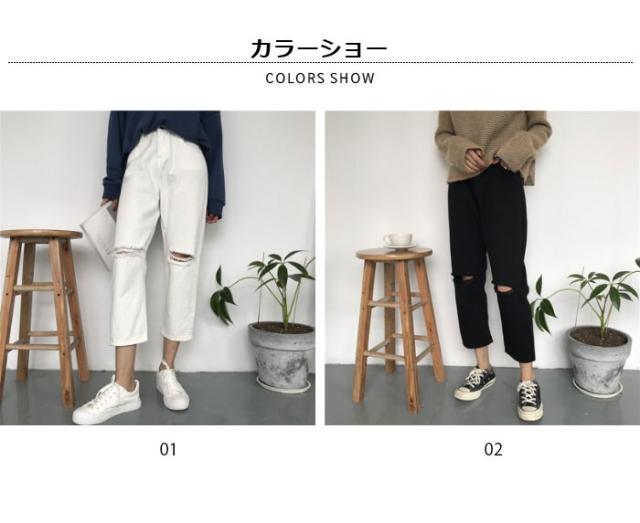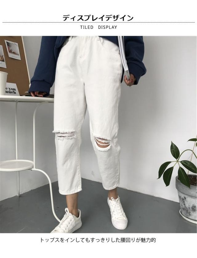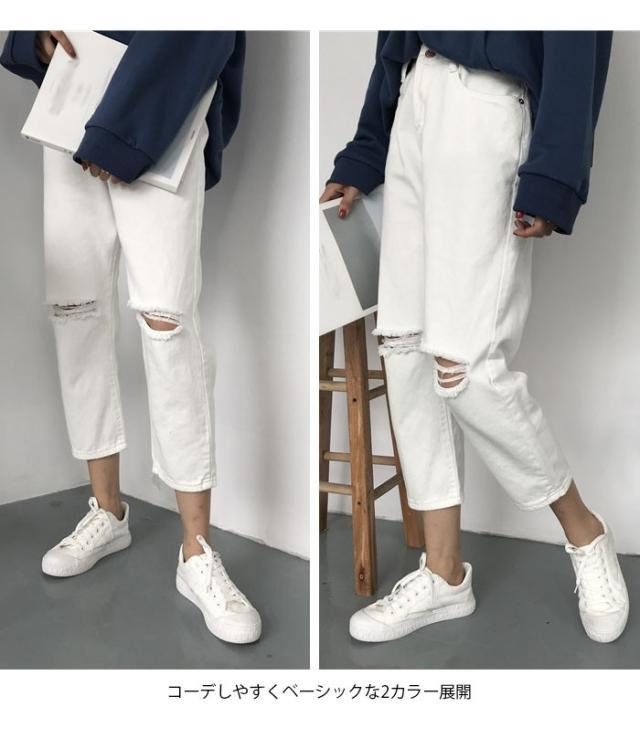 デニム レディース 九分丈パンツ クラッシュデニム テーパードパンツ ワイドパンツ ダメージ加工 無地 お洒落 カジュアル スタイリッシュ 夏新作