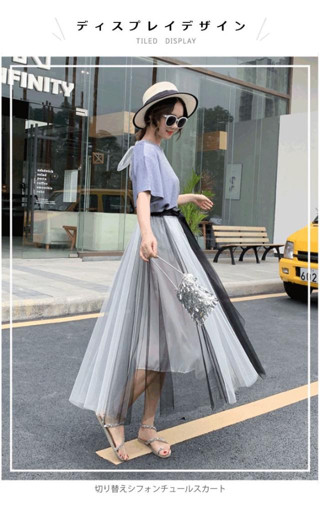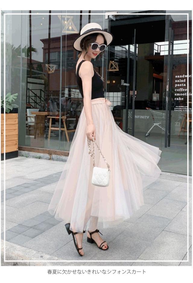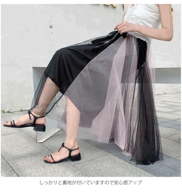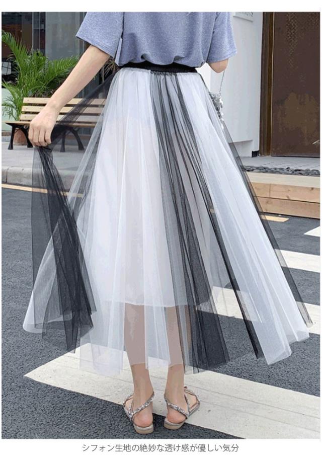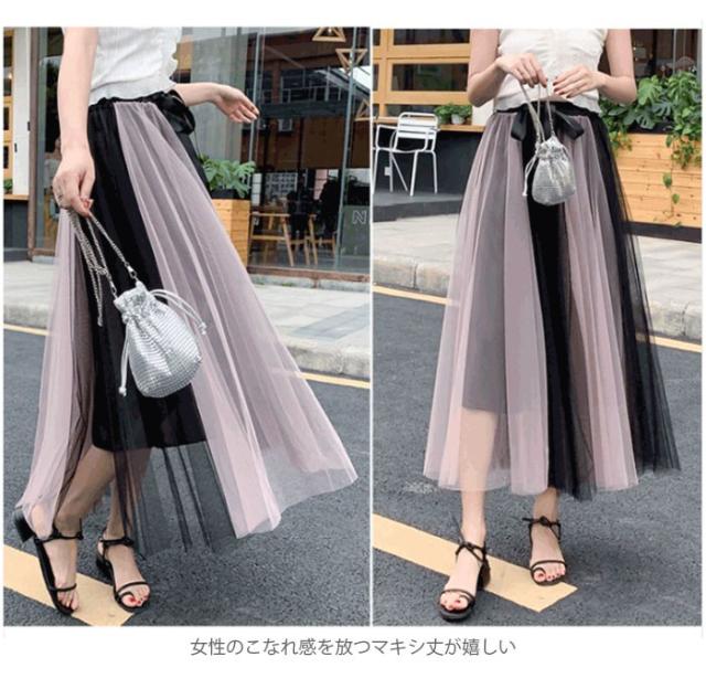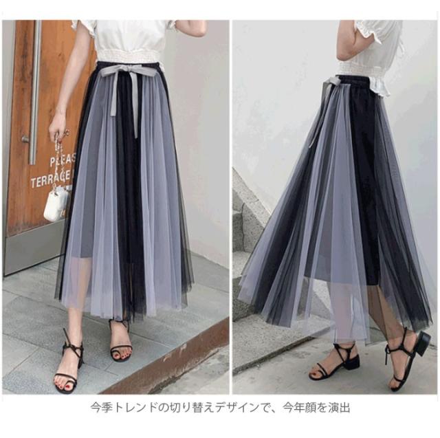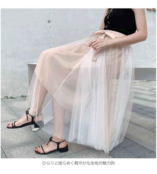 チュールスカート レディース シフォンスカート マキシスカート ロングスカート プリーツスカート 切り替え 裏地付き 透け感 ふんわり 春夏 夏新作
