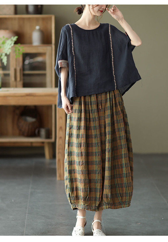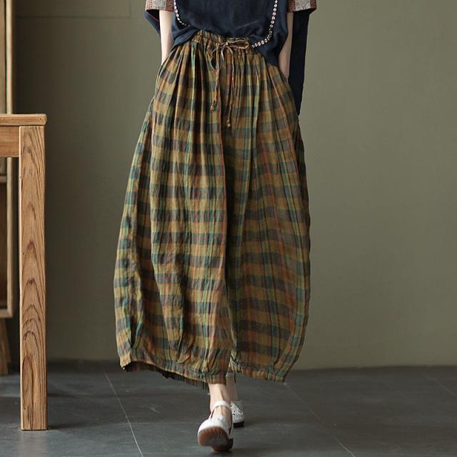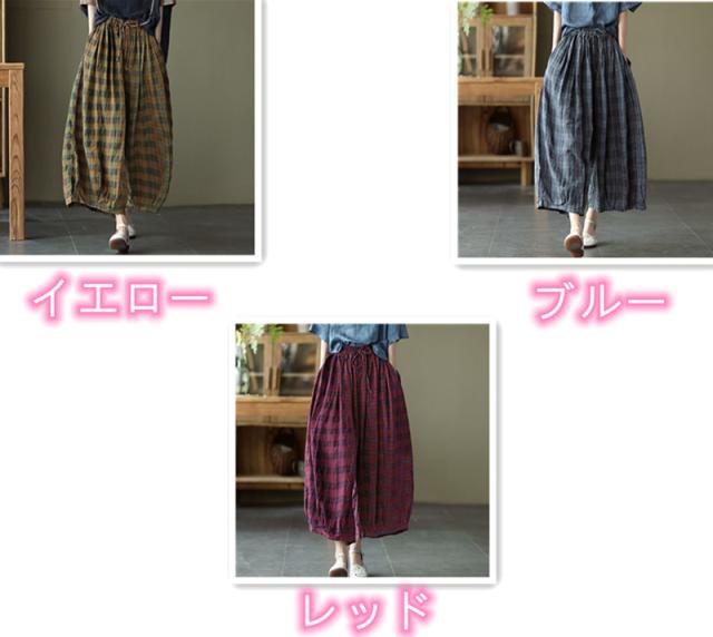 サルエルパンツ 大人 サルエル パンツ アラジンパンツ バルーンパンツ チェック柄 ワイドパンツ レディース バルーンパンツ ロング 10分丈 きれいめ かわいい ウエストゴム 春夏 ボトムス 綿麻 大きいサイズ 送料無料