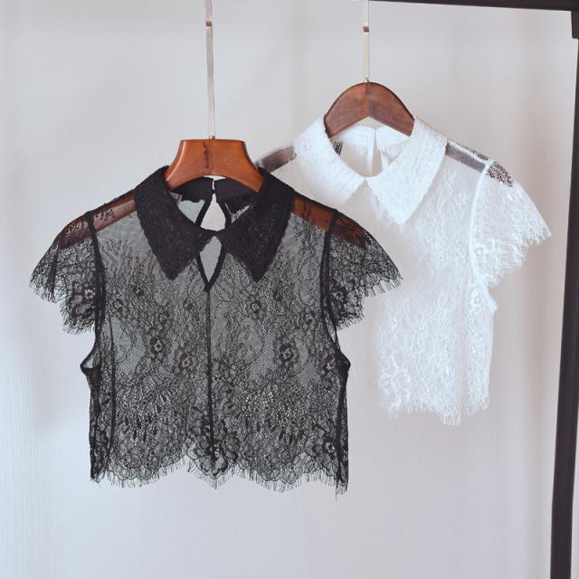 付け襟 シャツ衿 シャツ襟 フェイクシャツ つけえり つけ襟 レース 透け感 フラワーレース ファッション小物 レディース 送料無料