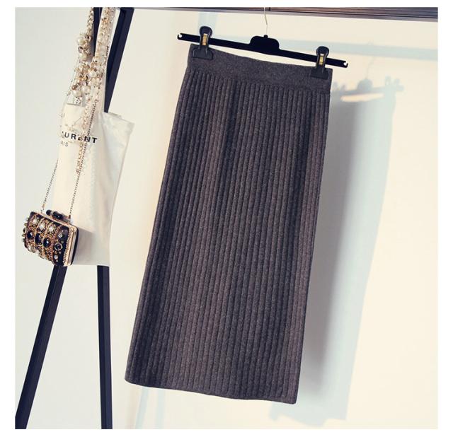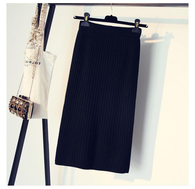 バックスリット ニットスカート タイトスカート ペンシルスカート 膝丈 スリット リブニット スリット入り スカート ウエストゴム 秋冬 秋 冬 タイト 無地