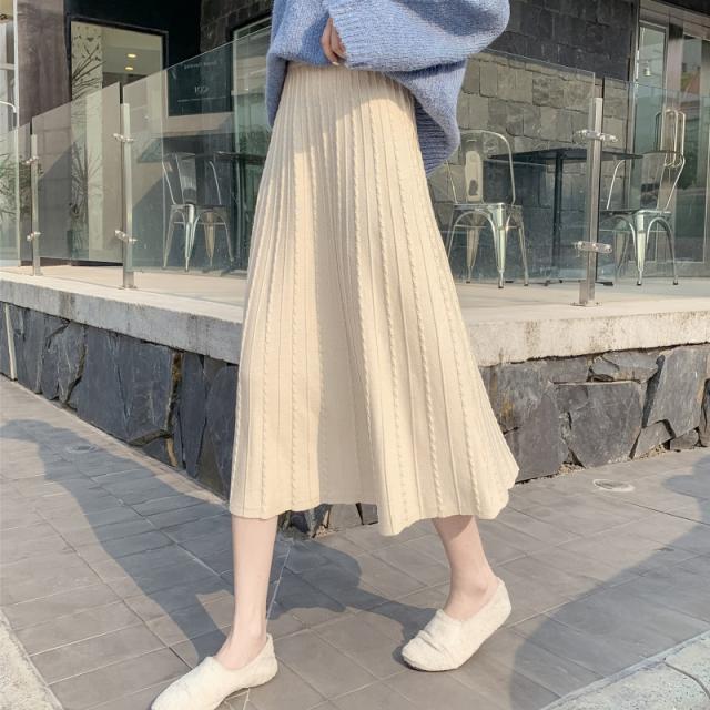 プリーツ ニットスカート スカート プリーツスカート ロングニットスカート ロング丈 ニットスカ フレア Aライン ハイウエスト ミモレ 秋 秋冬 お洒落 レディース