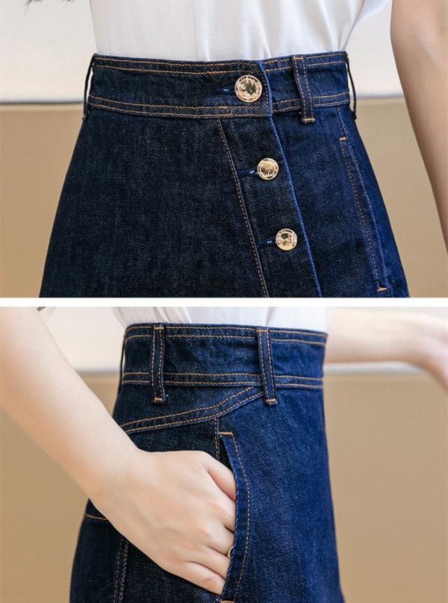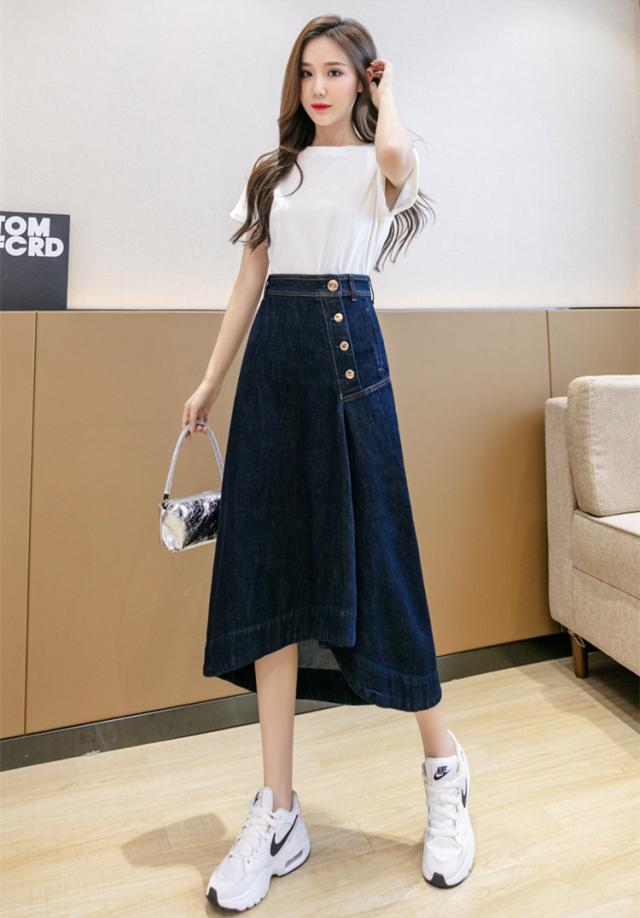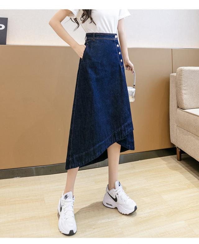 デニムスカート アシメトリー ハイウエスト スカート ミモレ丈 ロング丈 タック ロングデニムスカート フレア Aライン カジュアル レイヤード 春 秋