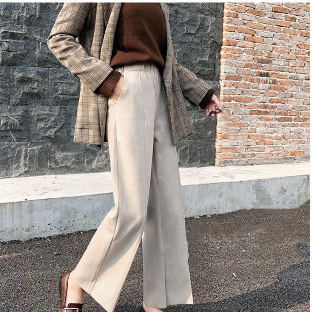 全3色 ワイドパンツ 9分丈 ボトムス レディース スリットワイドパンツ 暖かい 大きいサイズ 快適通気 大人 トレンド 秋冬 洗える 無地 スカーチョ スカンツ ストレッチ 体型カバー ゆったり