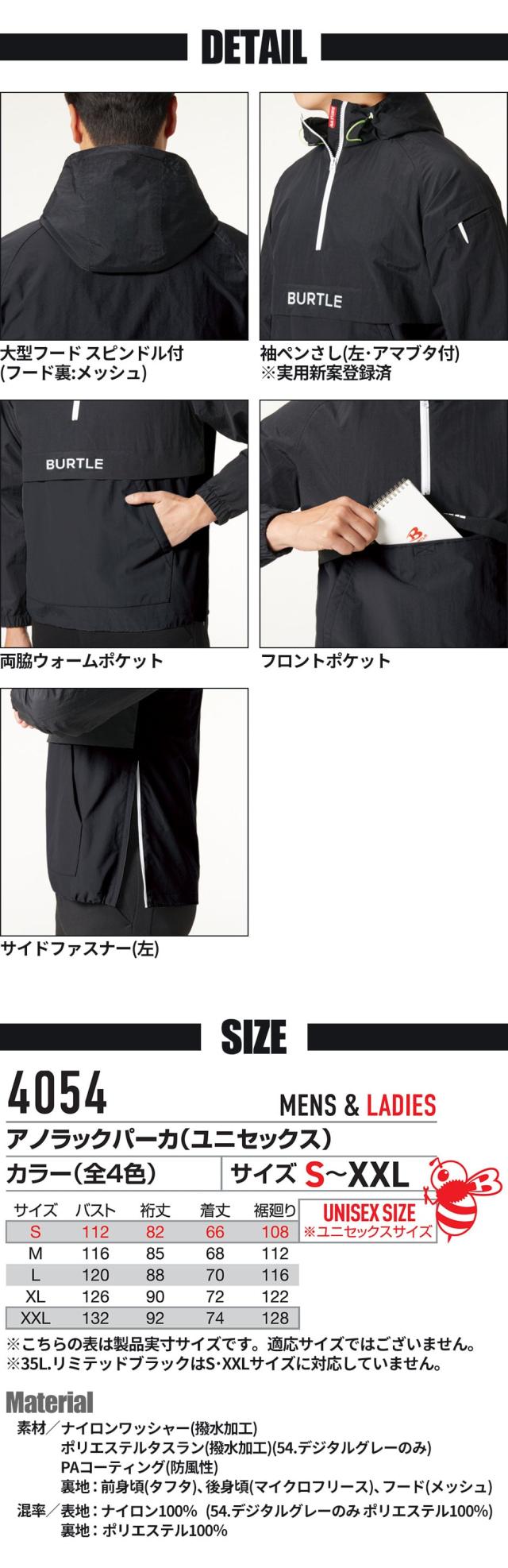 バートル BURTLE 防風 パーカー メンズ 裏フリース フード アノラックパーカー 4054 作業着 撥水 作業服 ブルゾン 上着 おしゃれ かっこいい 人気 作業 工場 外作業 仕事 土木 工事 現場 ストリート アウトドア タウンユース スポーツ