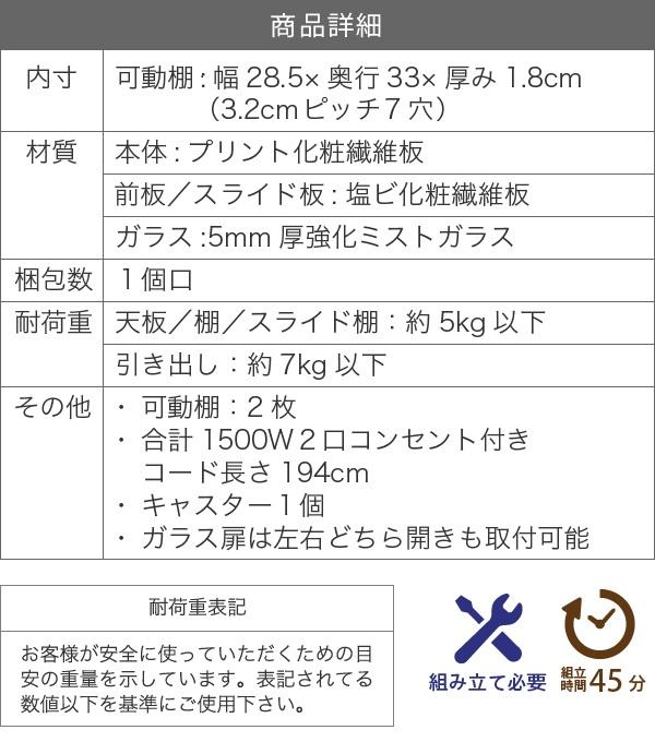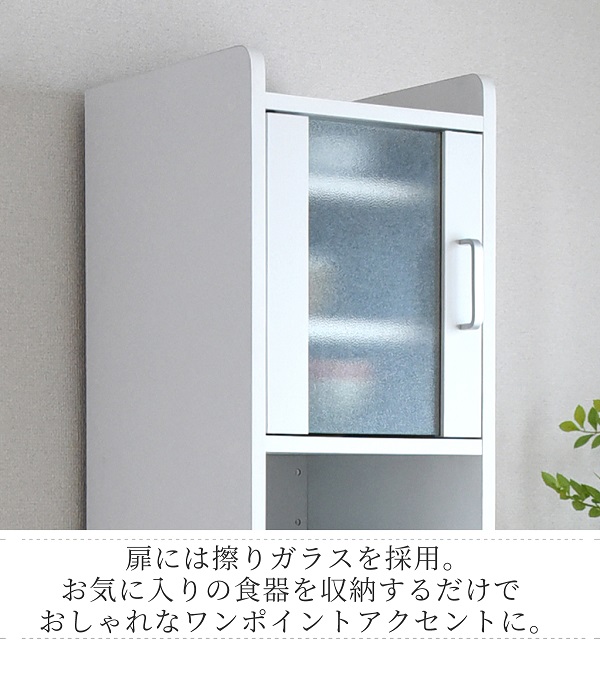 家電が収納できる、スライドテーブル2つに加えて、食器類の収納に便利な扉収納付き。