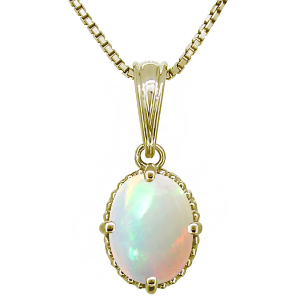 オパール ネックレス 一粒 レディース シンプル ペンダント 誕生石 10金 10k