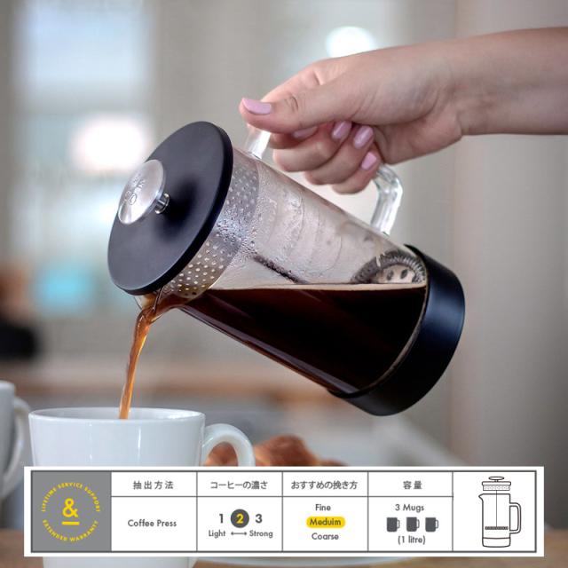 ステンレススチールとガラスのみで作られた「コア・コーヒープレス」はプラスチックを含まないコーヒーメーカーをお探しの方に最適です。