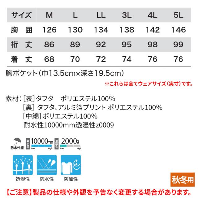 ジーベック XEBEC 作業服 秋冬用 582 防水防寒ブルゾン 3L 作業着