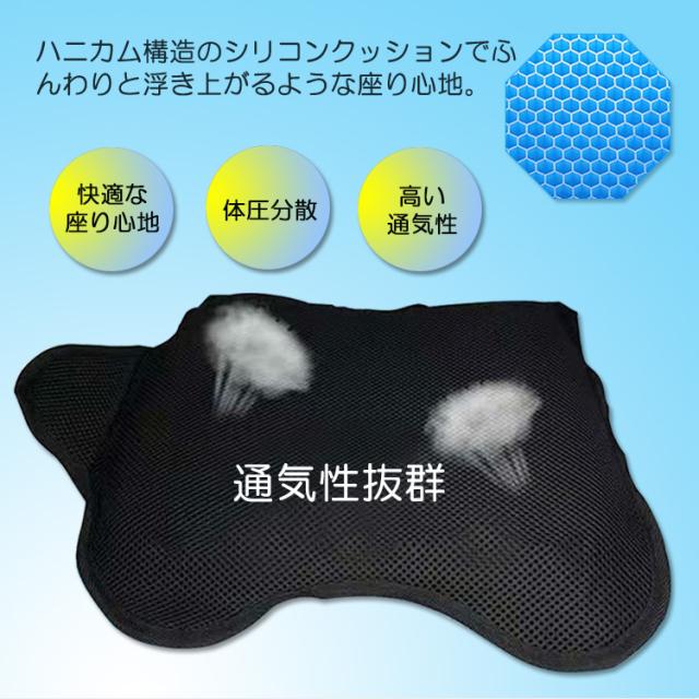 シートクッション,バイククッション,サイクルカバー,エアシート,3Dエアクッション,お尻の痛み,腰痛対策,ロングツーリング,原付,スクーター,取り付け簡単,破れにくい,通気性抜群,劣化防止,衝撃吸収,滑り止め,ジェルシートクッション,ゲル,シートカバー,ゲル,カバー,ゲルクッション,げるくっしょん,サポートクッション,ジェルクッション,