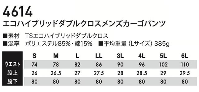 TS-DESIGN エコハイブリッド ダブルクロス メンズカーゴパンツ 4614