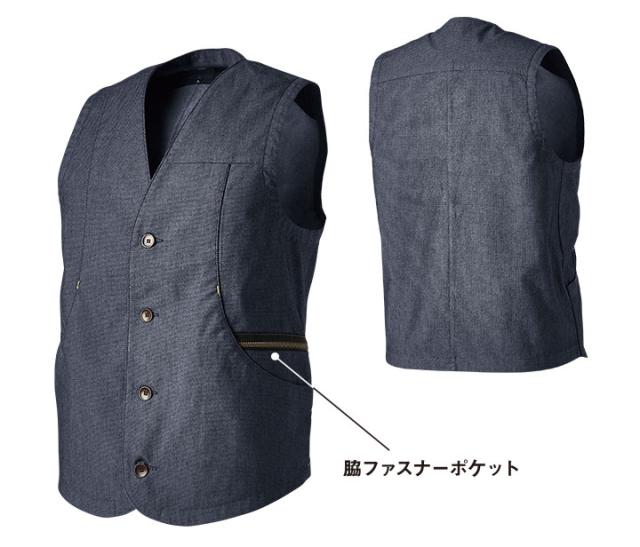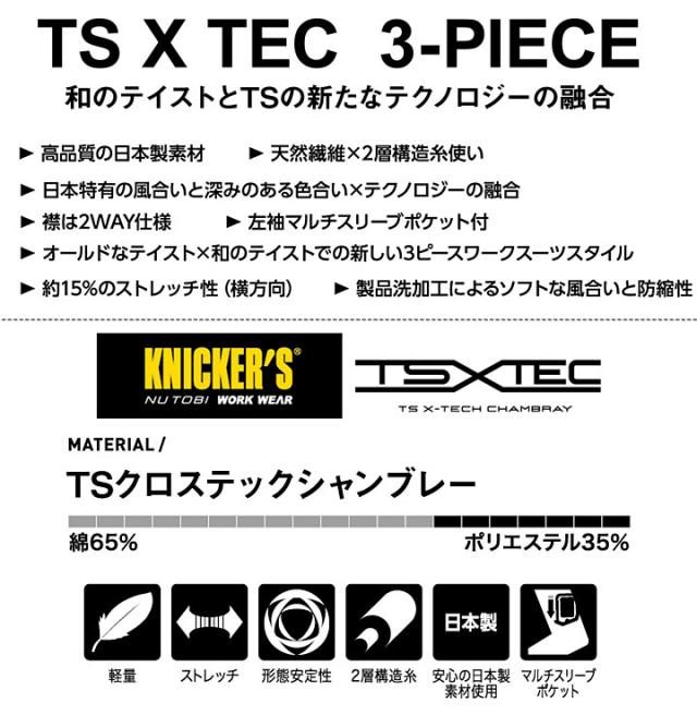 ワークベスト シャンブレー生地 デニム系 TS X TEC ニッカーズ TSデザイン 5538 軽量 ストレッチ 秋冬 作業服 作業着 藤和 TS-DESIGN
