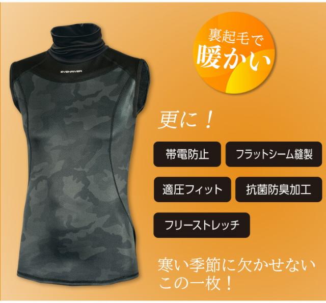 防寒 インナーシャツ ノースリーブ タートルネック 裏起毛 保温 冬用 ヒートボディネオ イーブンリバー GTZ04 防寒インナーウェア 帯電防止 抗菌 防臭 ストレッチ コンプレッション スポーツ 作業服 作業着【秋冬】 EVENRIVER