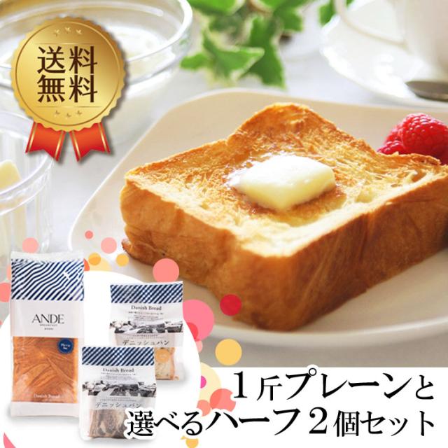 デニッシュ食パン ANDE プレーン1斤サイズとハーフサイズ4種から2個選べるお試し3個セット アンデ