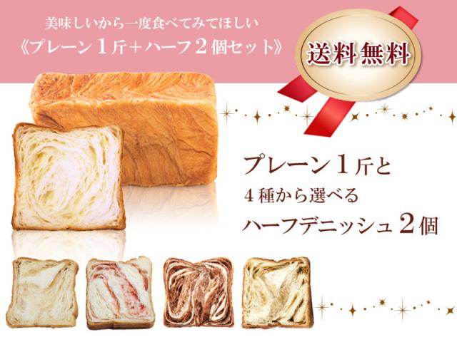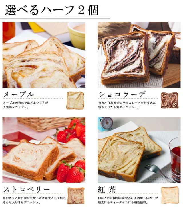 一度にたくさんは食べ切れないけど、色々な味を楽しみたい方にも嬉しいセットです。人気のプレーンは1斤サイズで、違ったフレーバーを少しずつ楽しめるようハーフサイズは2個お選び頂けます。