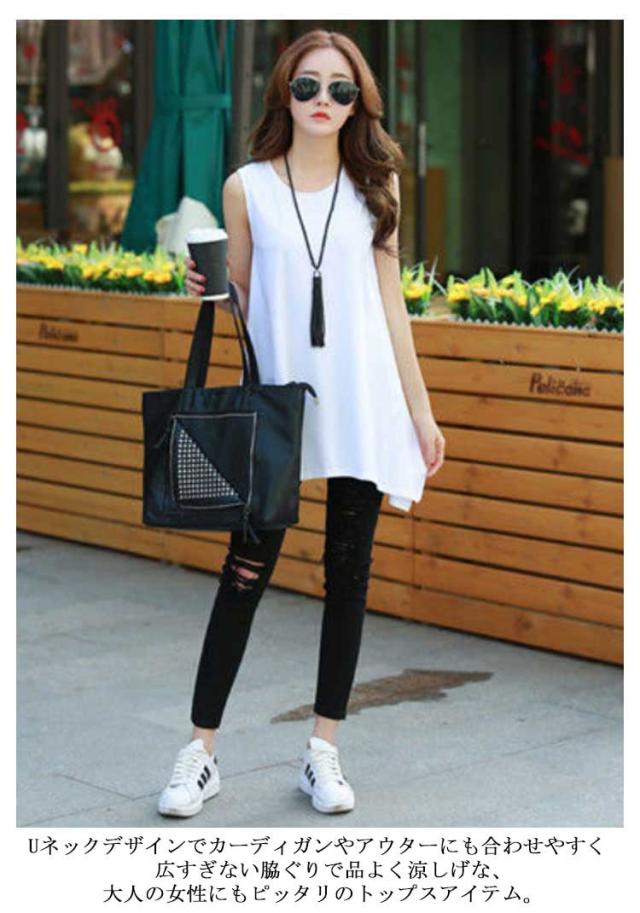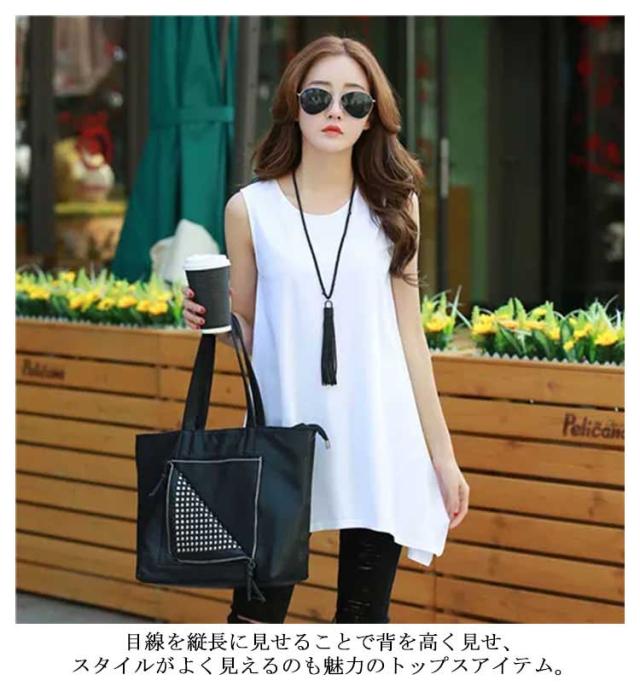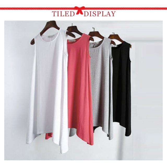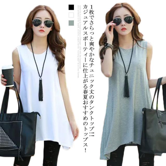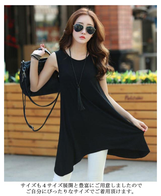 タンクトップ レディース ノースリーブ ロング シャツ チュニック ワンピース フレアデザイン Uネック 丸首 ブラウス インナー キャミソール Tシャツ アシンメトリー おしゃれ かわいい シンプル カジュアル