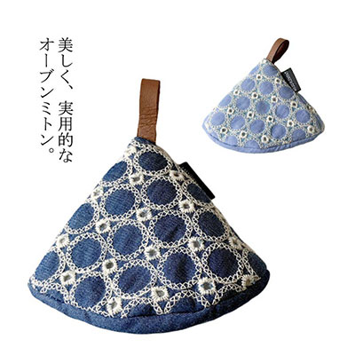 | 美しく、実用的なオーブンミトン。 ふわふわの中綿入りだから柔らかく手触りがよいです。 熱い鍋や食器を持つ時に手を熱から守ります。 吊り紐があるので、吊るして収納できます。 かわいい耐熱ミトンとシンプルな刺?が風合いを引き立てます。 | |