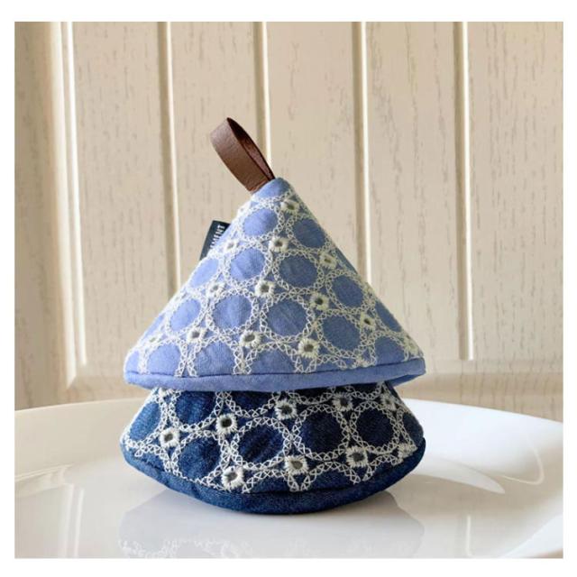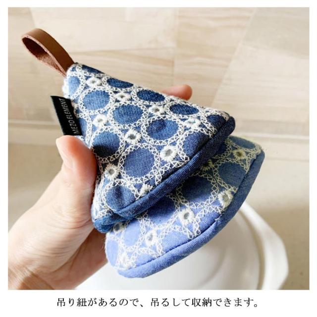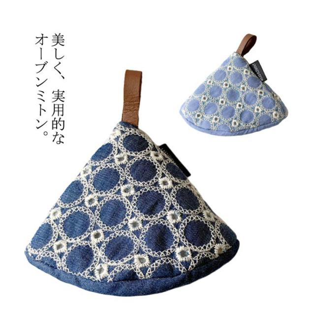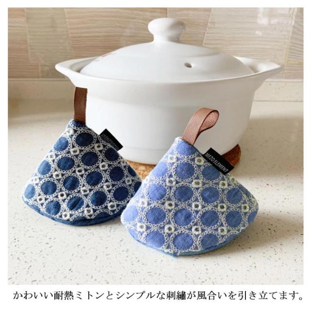 送料無料 耐熱三角鍋つかみ 耐熱ミトン 2枚セット オーブンミトン キッチンミトン おしゃれ かわいい 滑り止め やけど防止 左右兼用 刺繍 レザー手柄 コットンミトン