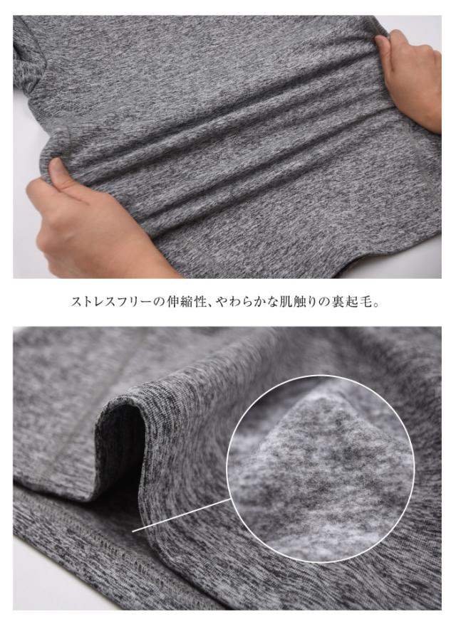 程よくフィットするストレッチ性は、ヨガやウォーキングなどスポーツシーンでも重宝する快適な着心地。防寒インナーとしても、おうちではリラックスウェアとしても◎