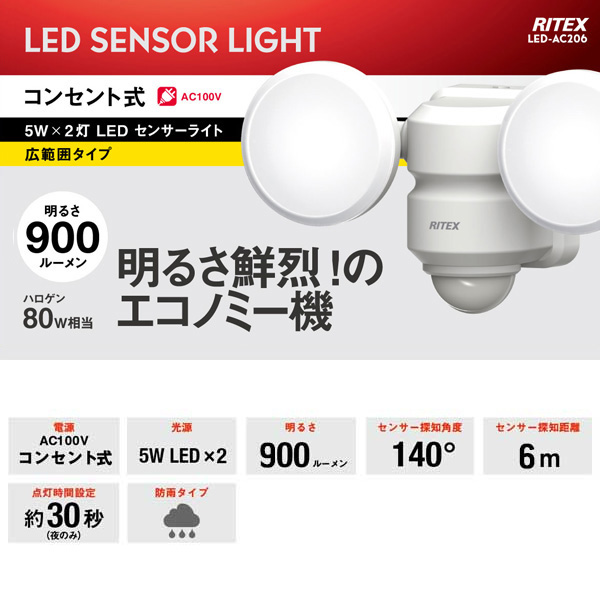 在庫あり ムサシ 5W×2灯 LEDセンサーライト LED-AC206