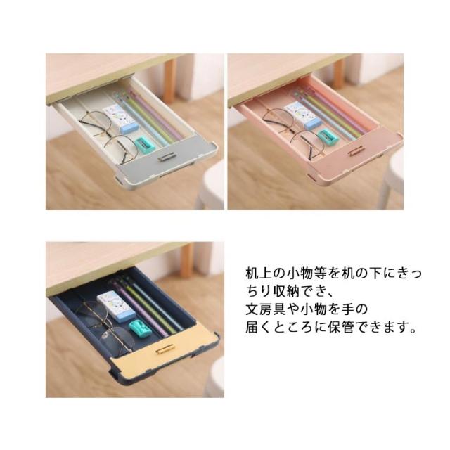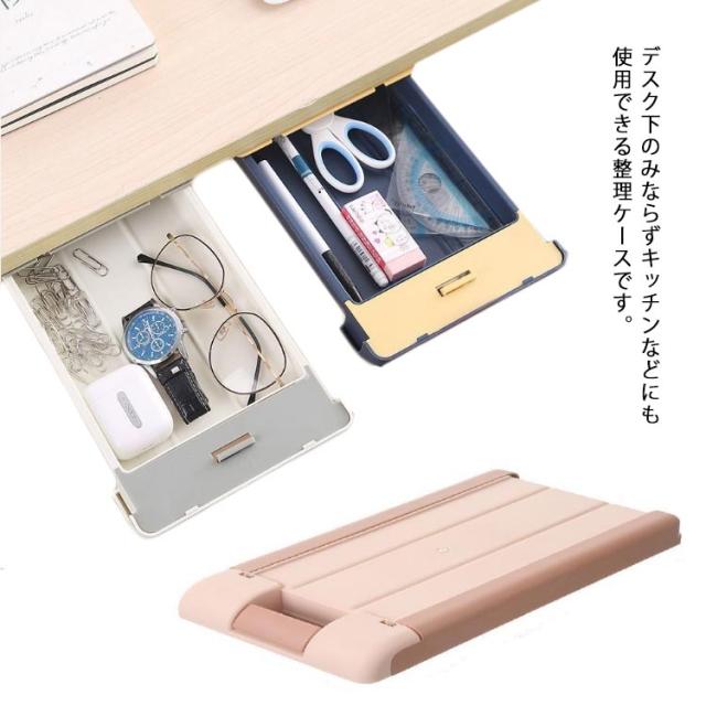 デスク下 引き出し式 収納ボックス 隠し引き出し 机下収納 スライド 収納ケース 小物入れ 省スペース 粘着式 文房具 デスク整理 便利グッズ 多用途 簡単設置 オフィス