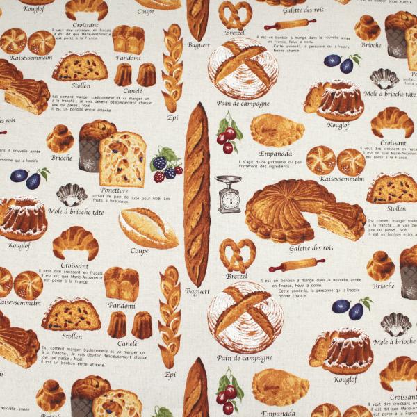 【10cm単位価格】 生地 布 美味しそうなパン柄 ベーカリー 綿85%麻15% 約110センチ幅 コットンこばやし ゆうパケット2m対応