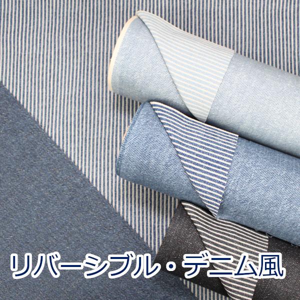 【10cm単位価格】 生地 布 リバーシブル デニム風 プリント 綿100% 約110センチ幅 ヒッコリー ストライプ ゆうパケット2m対応