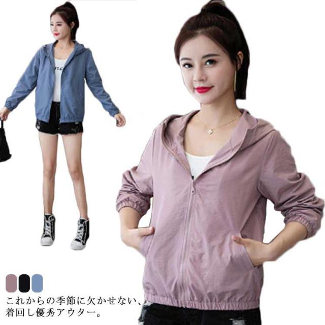 アウター ブルゾン レディース ジッパー 長袖 ブルゾン フード付き ジャケット コート ショート丈 軽量 カジュアル ゆったり スポーツ 通勤 通学 無地 春 夏 秋 送料無料