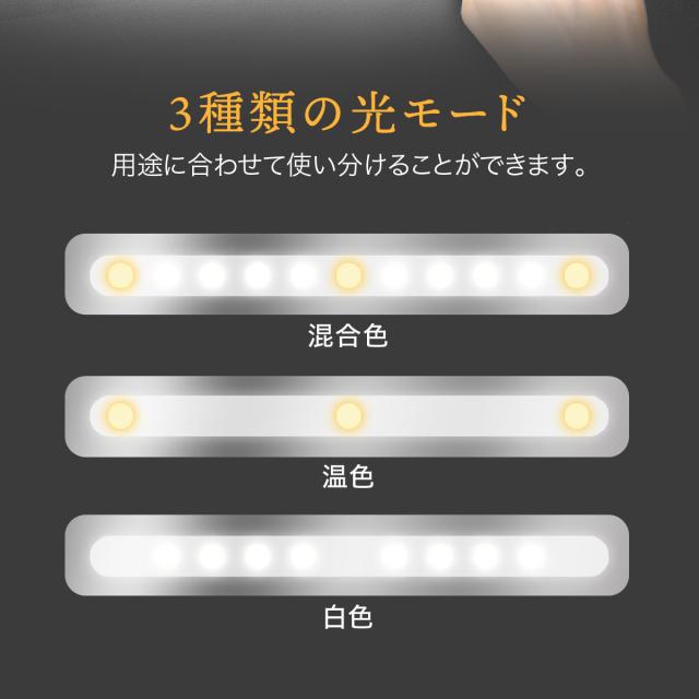 【タッチ式で3種類の光モード】タッチ式のボタンで簡単に光を調節。混合色・温色・白色の光モード