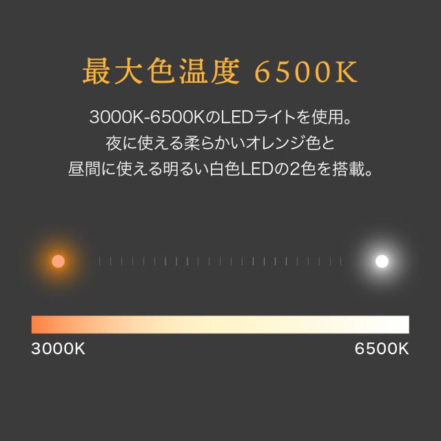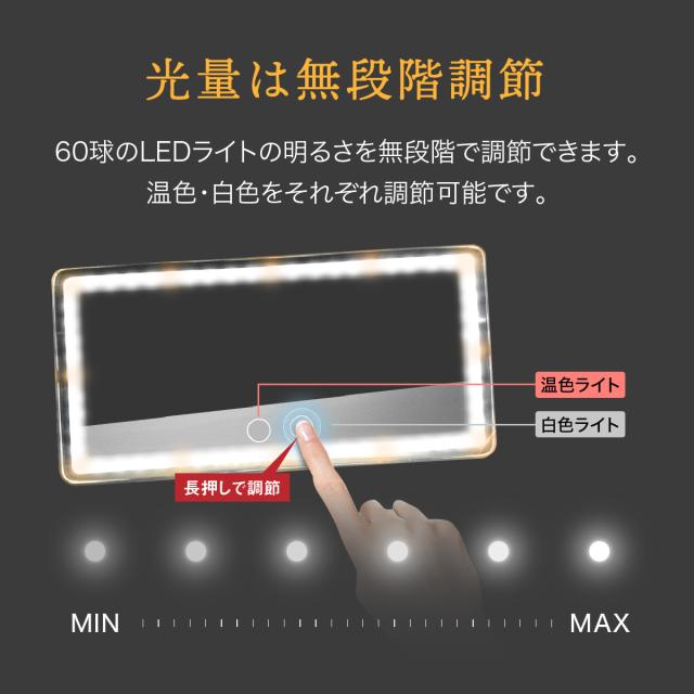 【光量は無段階調節】60球のLEDライトの明るさを無段階で調節できます。温色・白色をそれぞれ調節可能です。
