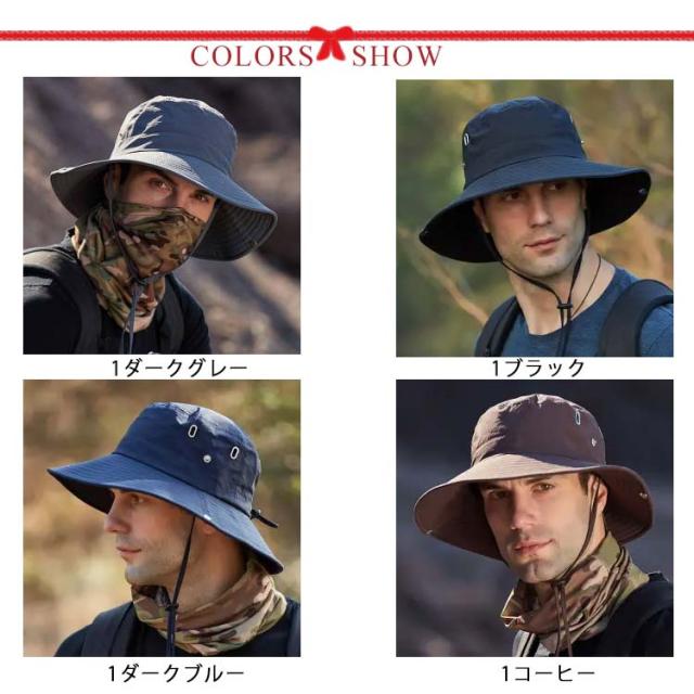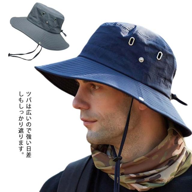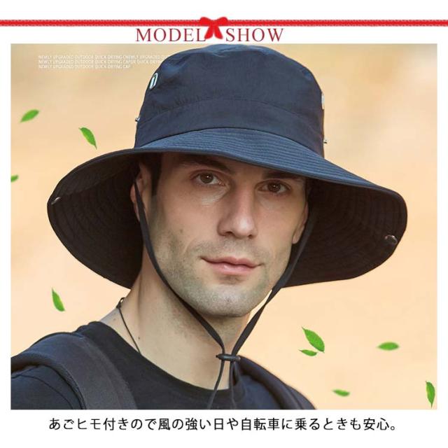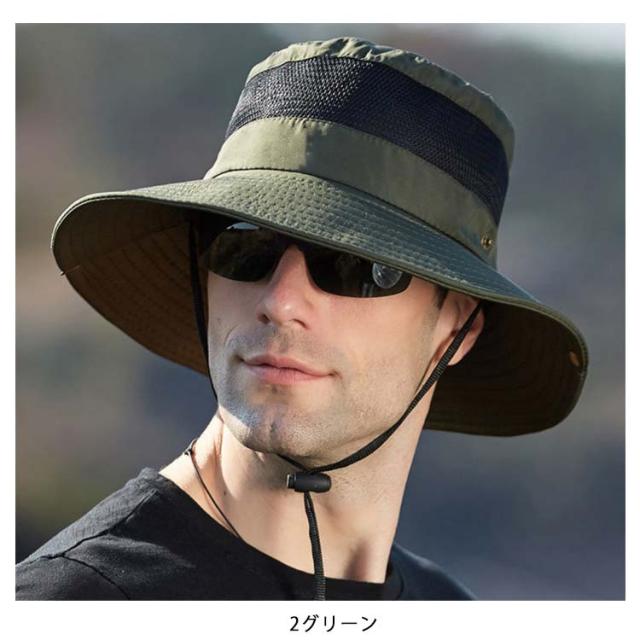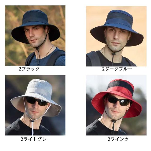 帽子 UVカット メンズ 大きいサイズ 紐付き メッシュ 紫外線 日よけ 通気性 UV対策ハット 日差し対策 春 夏 秋 サイズ調整可能 つば広 折り畳み ゴム紐 無地 トレッキング BBQ 送料無料