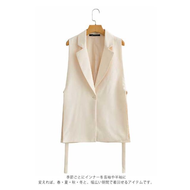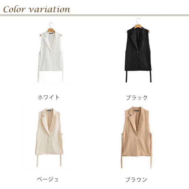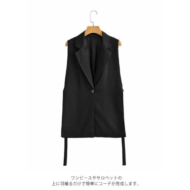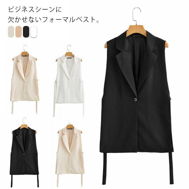 送料無料 ベスト レディース フォーマル ジレ 前開き ベスト スーツ ノースリーブ ジャケット ベスト トップス アウター 上着 スリム 体型カバー ウエストマーク 羽織り 重ね着 着痩せ 無地