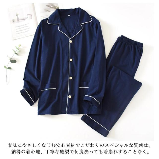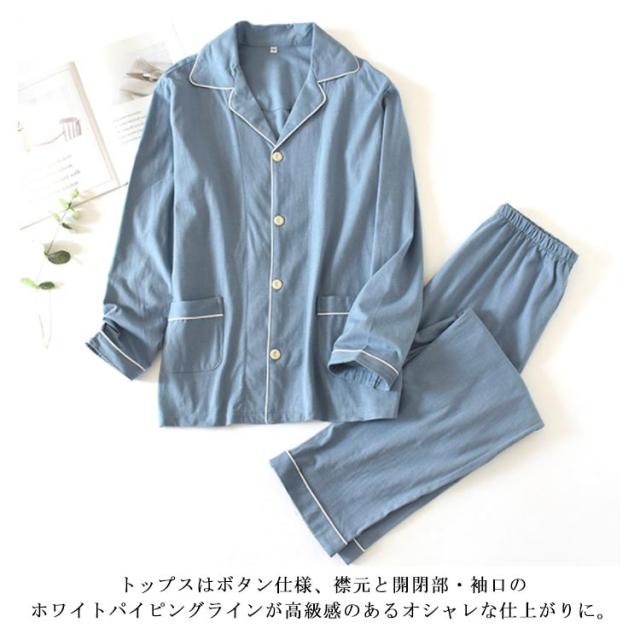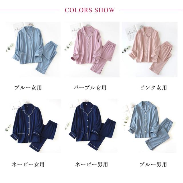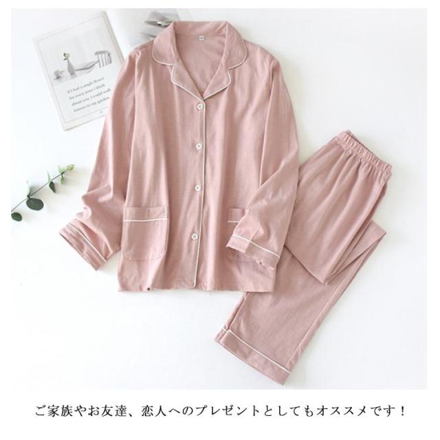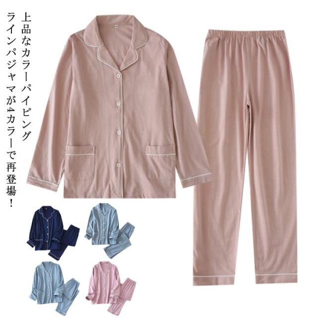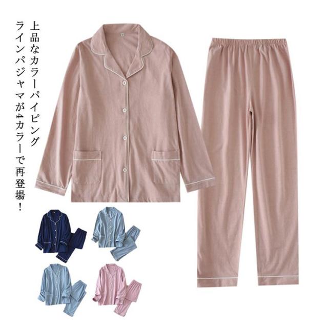 パジャマ ルームウェア 100%綿 長袖 前開き 上下セット レディース メンズ 男性 女性 新作 セットアップ ナイトウェア 部屋着 お洒落 大人 吸汗 速乾 コットン 春 秋 送料無料