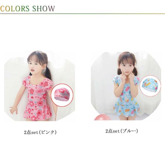 水着 子供 女の子 ワンピース 超可愛い キッズ 2点セット ベビー 子供水着 キッズ水着 女の子水着 子ども 子ども水着 ワンピース スイムキャップ かわいい 女児 みずぎ 送料無料