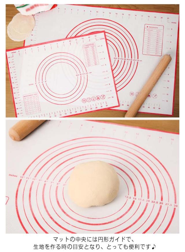 | パンの生地を捏ねったり、麺を打ったりしやすいマットです。 安全な食品級シリコーン素材で安心でご利用ください。 マットの中央には円形ガイドで、生地を作る時の目安となり、とっても便利です♪ 鮮やかな色なので、白い生地が判別しやすくなります。生地がくっつきづらく、生地をスムーズにこねる事ができます。 快適にお菓子作りやパン作りが楽しめます。 耐熱性があり、お湯中に入れて高温消毒可能で、いつでも清潔に使用。 | |