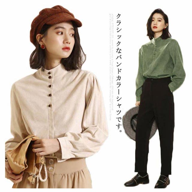 【送料無料】シャツ 長袖 レディース バンドカラーシャツ トップス ブラウス 長袖ブラウス シャツブラウス ゆったり エレガント ビジネス 通勤 春 秋 冬 オフィス カジュアル 無地