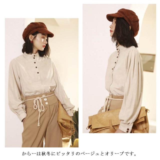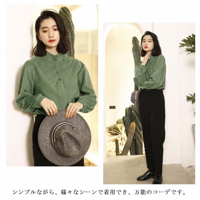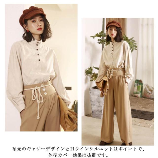 | クラシックなバンドカラーシャツです。 袖元のギャザーデザインとHラインシルエットはポイントで、体型カバー効果は抜群です。 からーは秋冬にピッタリのベージュとオリーブです。 バントカラーとビンテージな木製ボタンは防風ながら、ファッションも完成。 シンプルながら、様々なシーンで着用でき、万能のコーデです。 | |