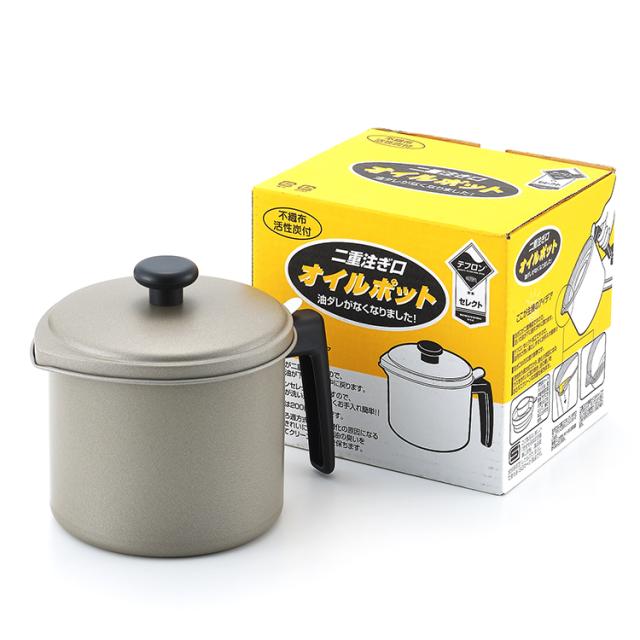 日本製 二重注ぎ口オイルポット 不織布活性炭カートリッジ付 SP1253 フッ素樹脂加工 二重口オイルポット