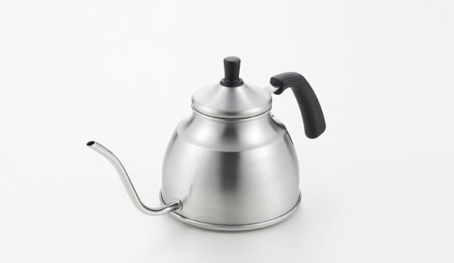 ドリップコーヒーのおいしさを引き出す細口タイプの注ぎ口。細く静かに一定量でお湯を注げるドリップ用ケトル。ガス火はもちろんIHにも対応。