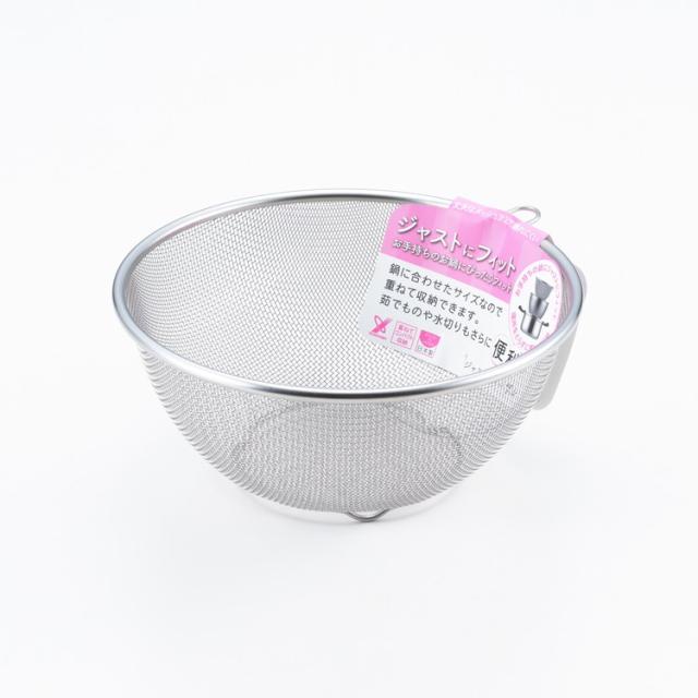 丈夫なメッシュアミで壊れにくい。鍋に合わせたサイズなので、茹でものや水切りもさらに便利。