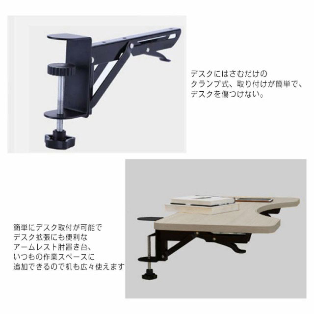 アームレスト 肘置き台 デスク 延長板 拡張 テーブル 机の肘掛け PCテーブル 後付け デスク取付 天板 マウス収納対応 キーボードトレイ デスクエクステンダー 手置き