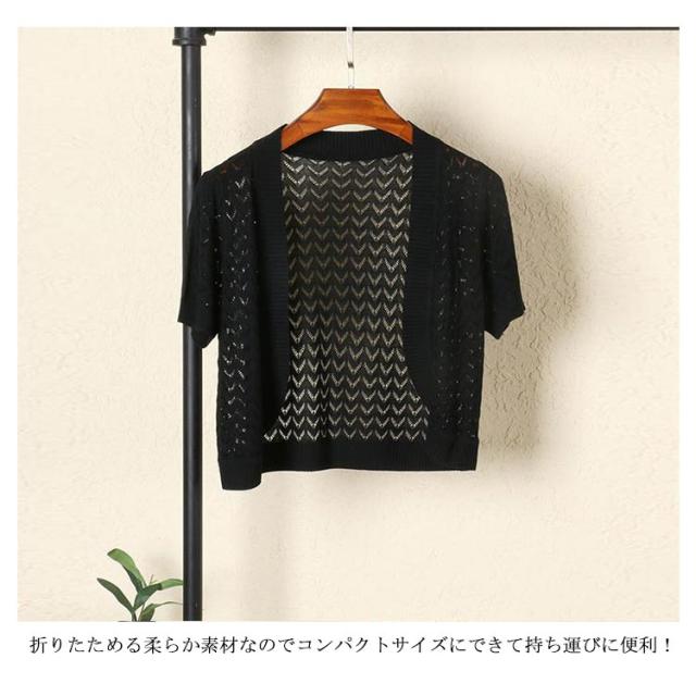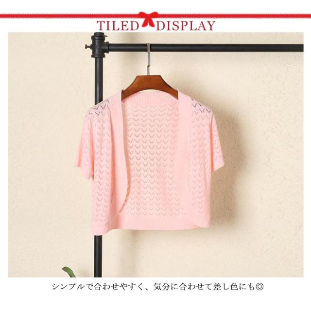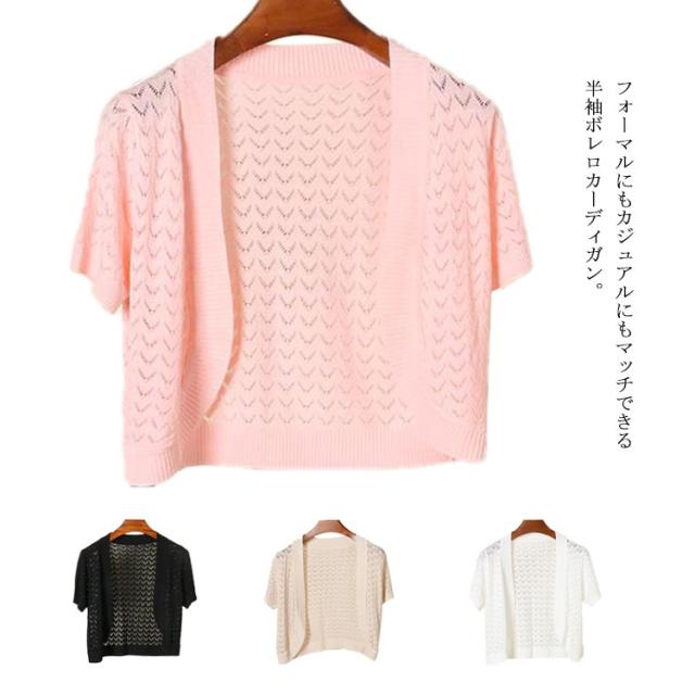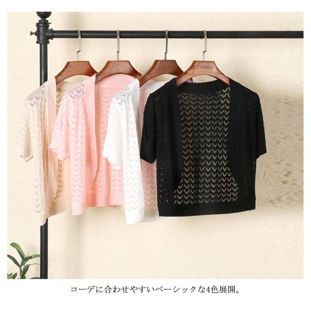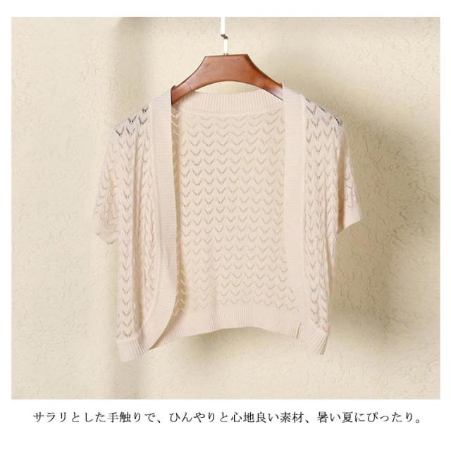 送料無料ボレロ 半袖 カーディガン レディース サマーカーディガン ニット ショート丈 トップス 透かし編み カーデ アウター 羽織もの ボタンなし