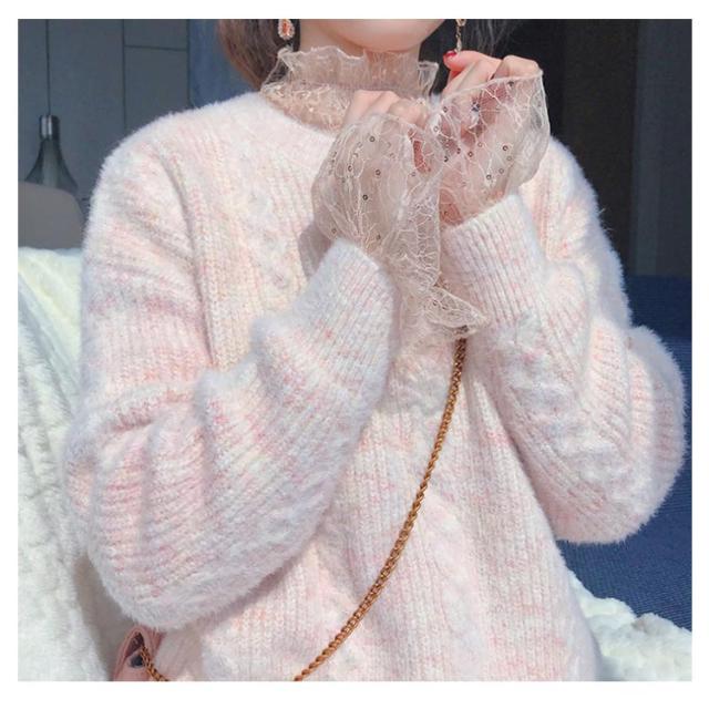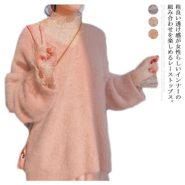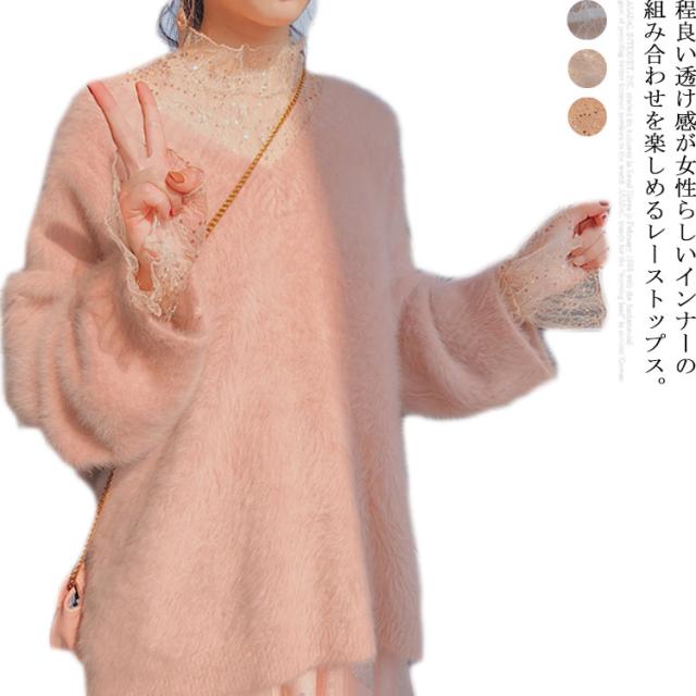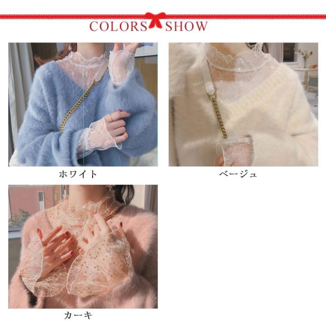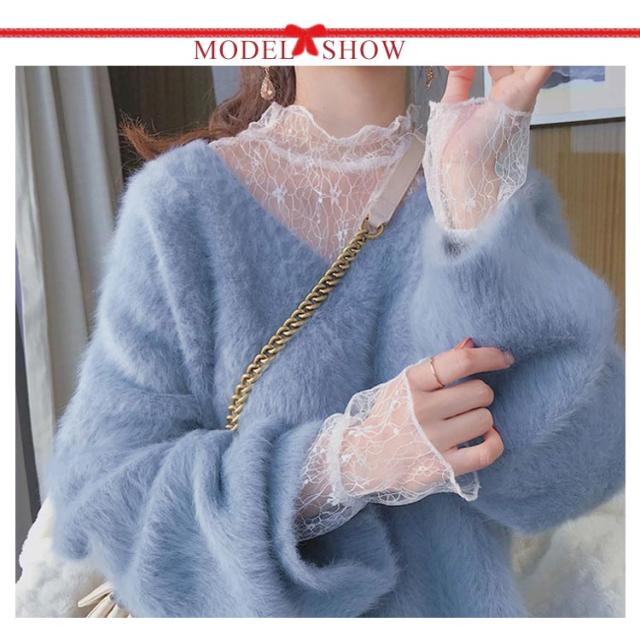 送料無料 レーストップス 総レースブラウス 長袖 レディース レース トップス カットソー ブラウス Tシャツ 透け感 花柄総レース ハイネック フリル スケスケ セクシー シアーシャツ インナー トップス 重ね着