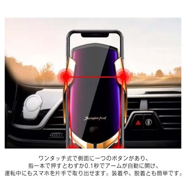 車載ホルダー スマホホルダー スマホスタンド 厚いケース対応 Qi対応 ワイヤレス充電 ワイヤレス充電器 オートホールド式 急速充電 スマホ 吸盤 角度調整 伸縮アーム車載ホルダー