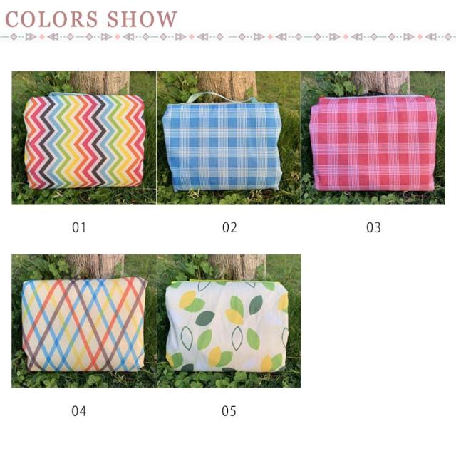 | 商品名:携帯レジャーシート カラー: カラフル メイン素材:ナイロン サイズ:M:150*200CM L:200*200CM 重量:800g ご注意事項 お客様のご覧になられますパソコン機器及びモニタなどの違い、また室内、室外での撮影により実際の商品素材の色と相違する場合もありますのでご了承下さい。 海外輸入商品により、軽い汚れ/ダメージ等がついている場合がございます。 | |